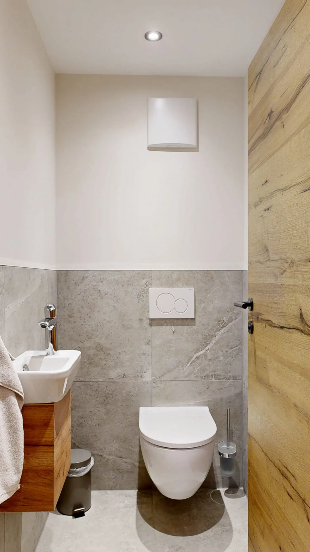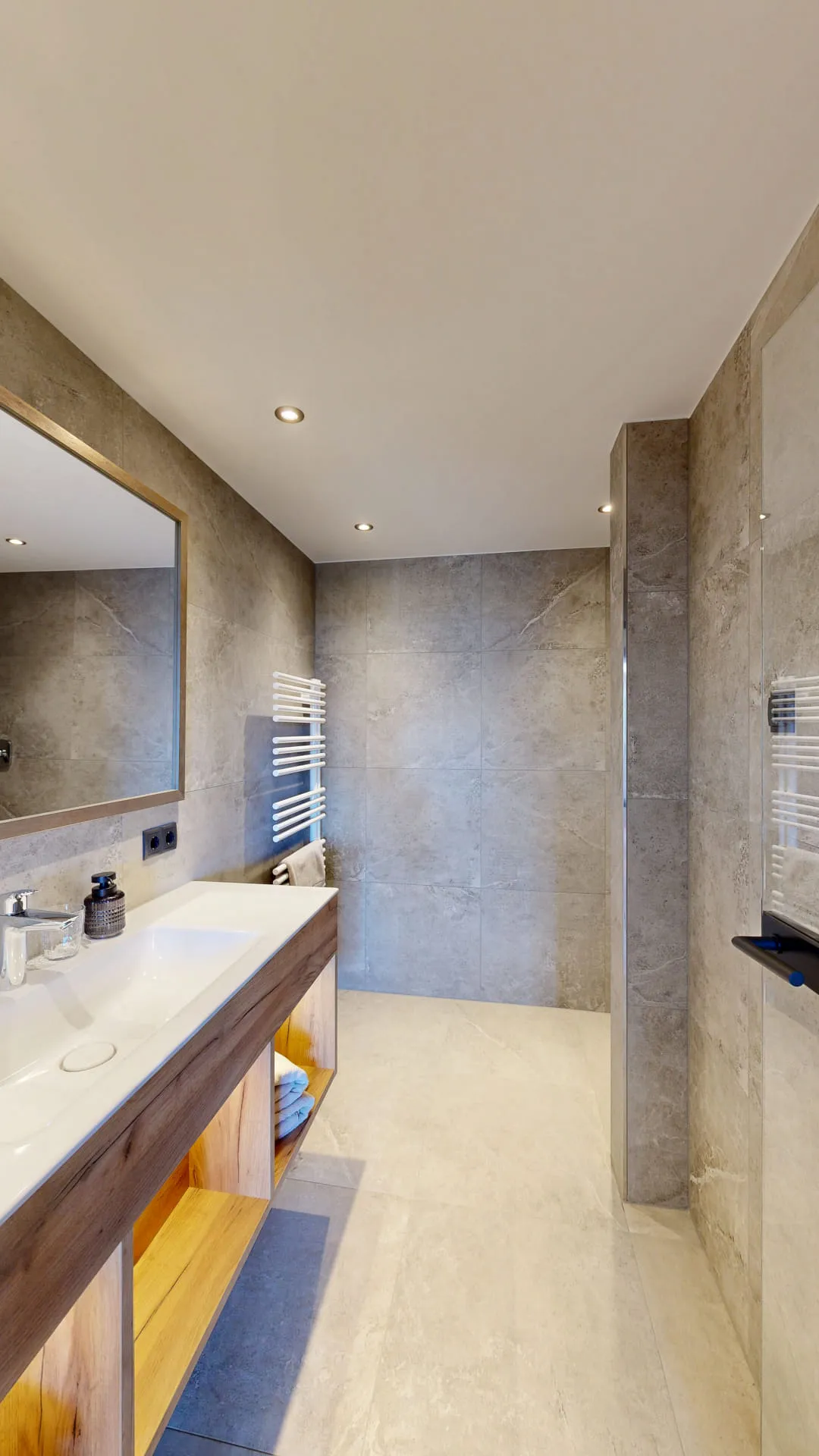 Das moderne Badezimmer ist mit begehbarer Dusche und Föhn, sowie ein separates WC sorgt für zusätzlichen Komfort.