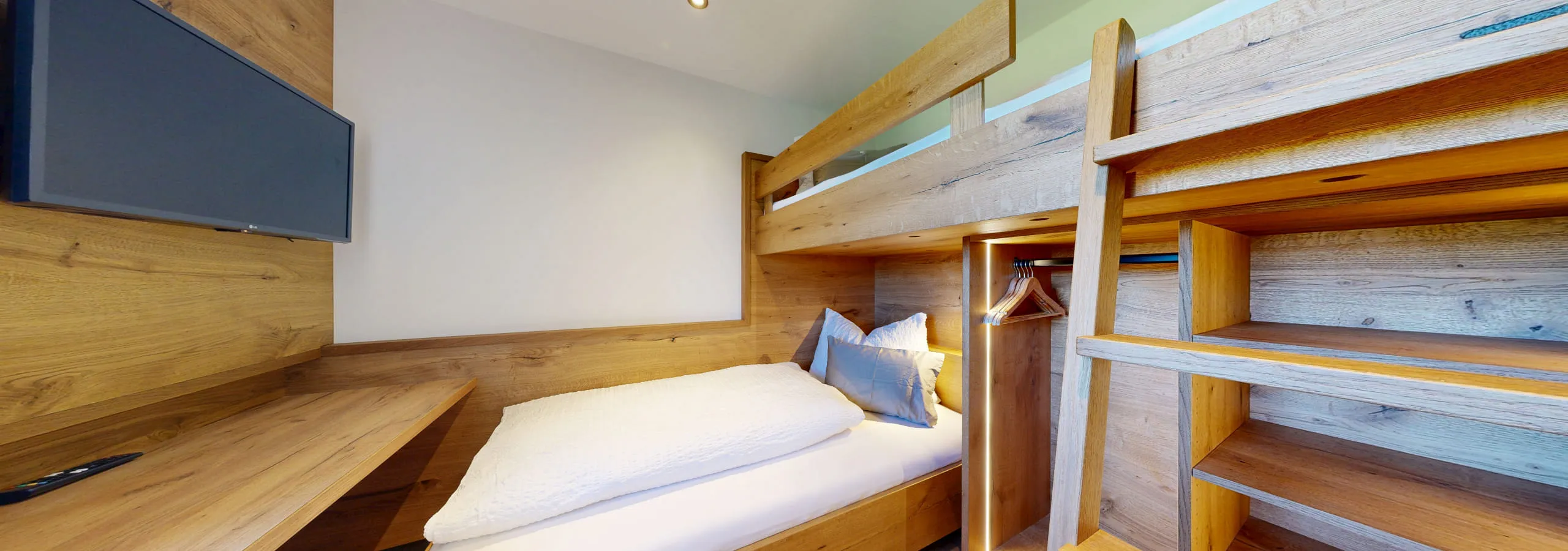 - zwei Schlafzimmer mit Anti-Allergie-Bettwäsche und TV: das erste mit Boxspringbett und das zweite mit Stockbett