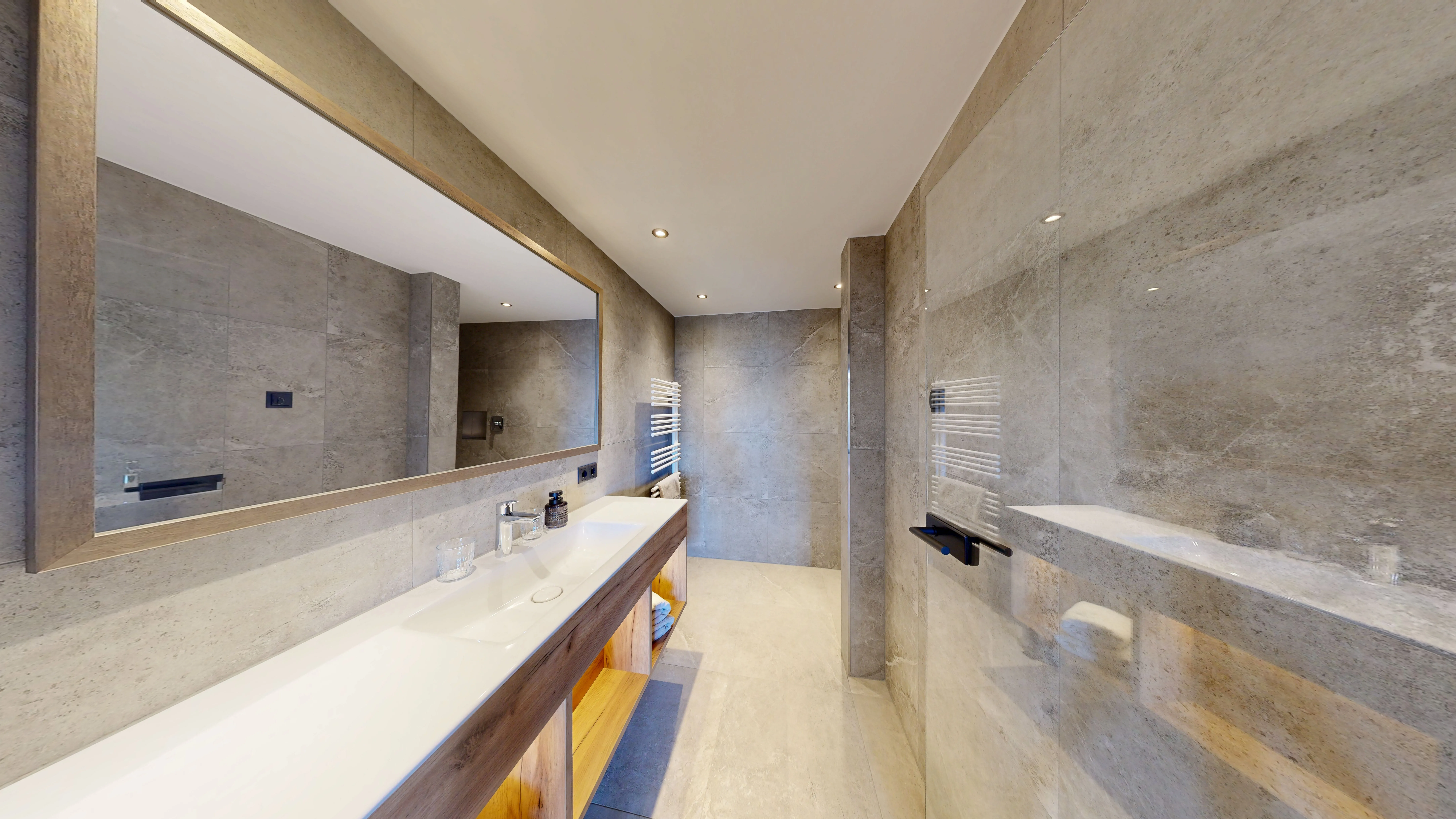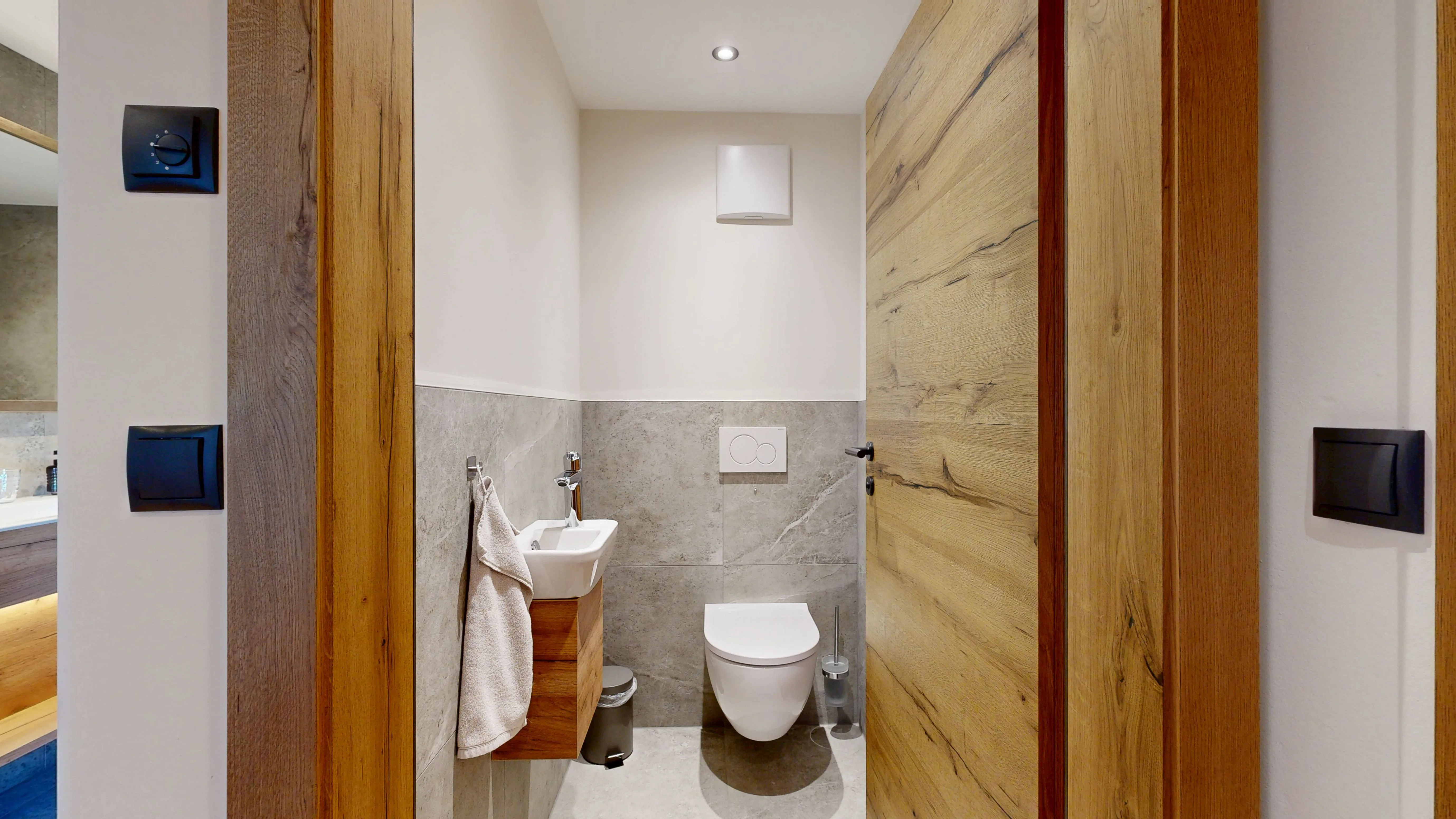 Das moderne Badezimmer ist mit begehbarer Dusche und Föhn, sowie ein separates WC sorgt für zusätzlichen Komfort.