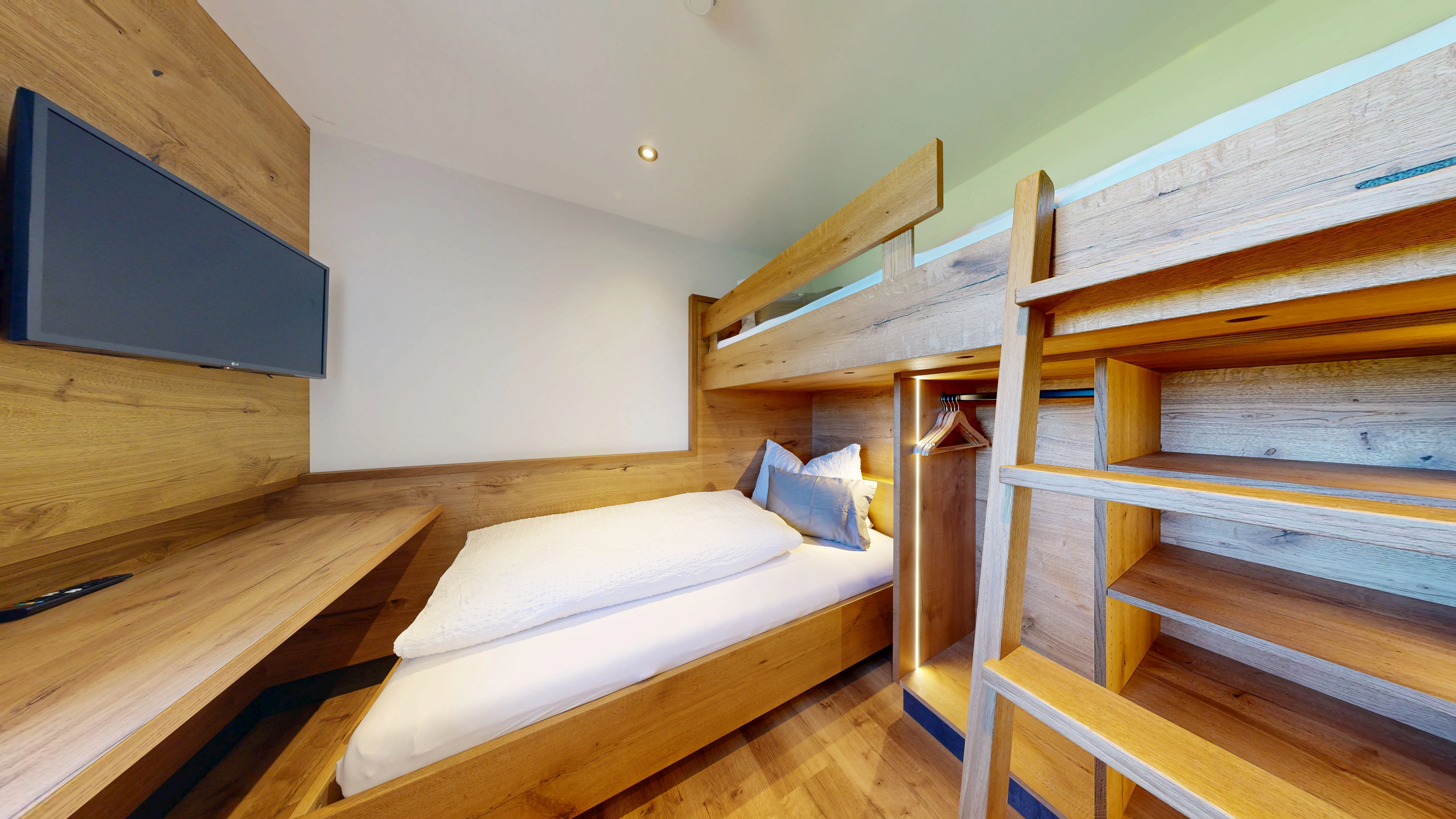 - zwei Schlafzimmer mit Anti-Allergie-Bettwäsche und TV: das erste mit Boxspringbett und das zweite mit Stockbett