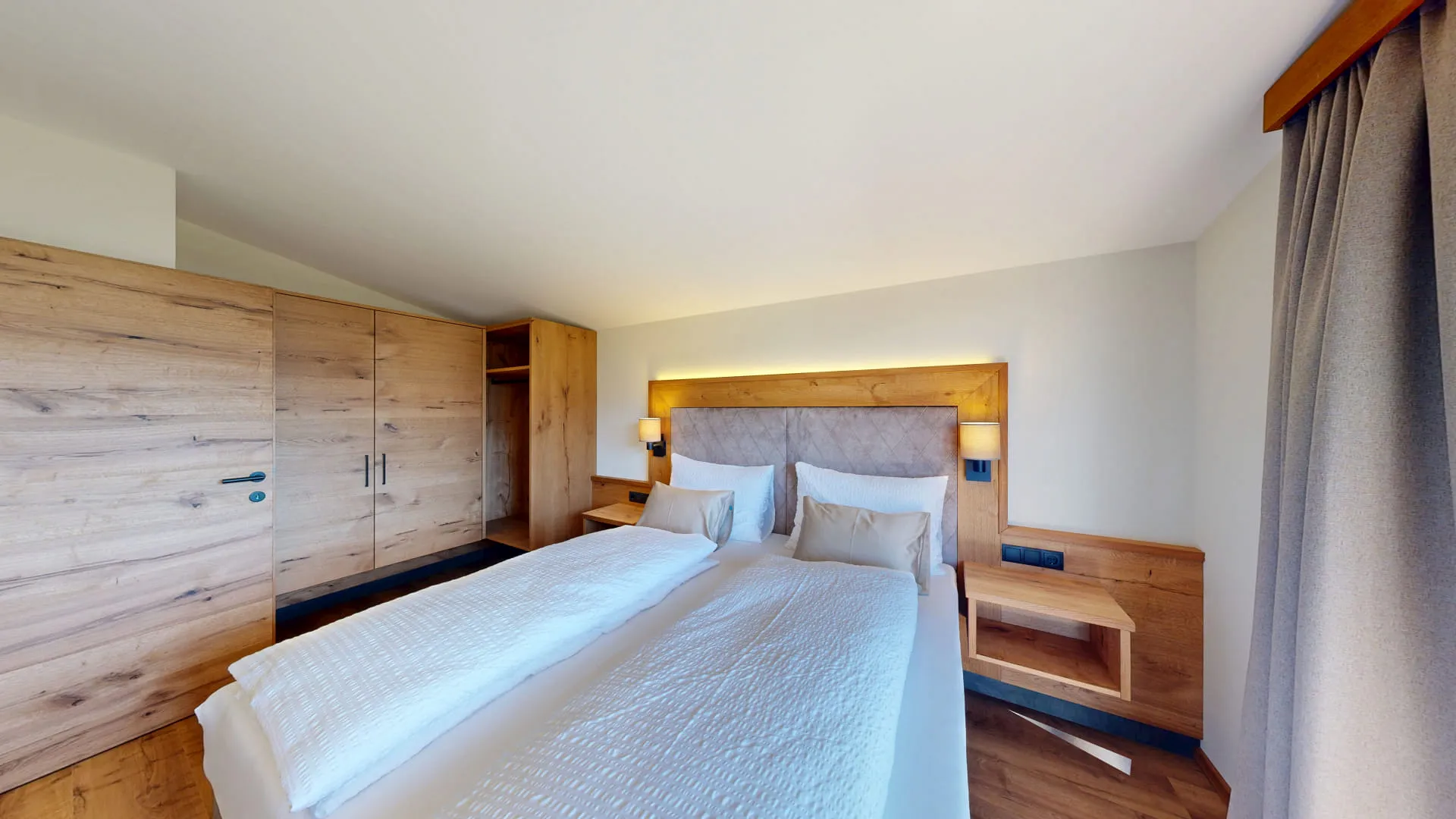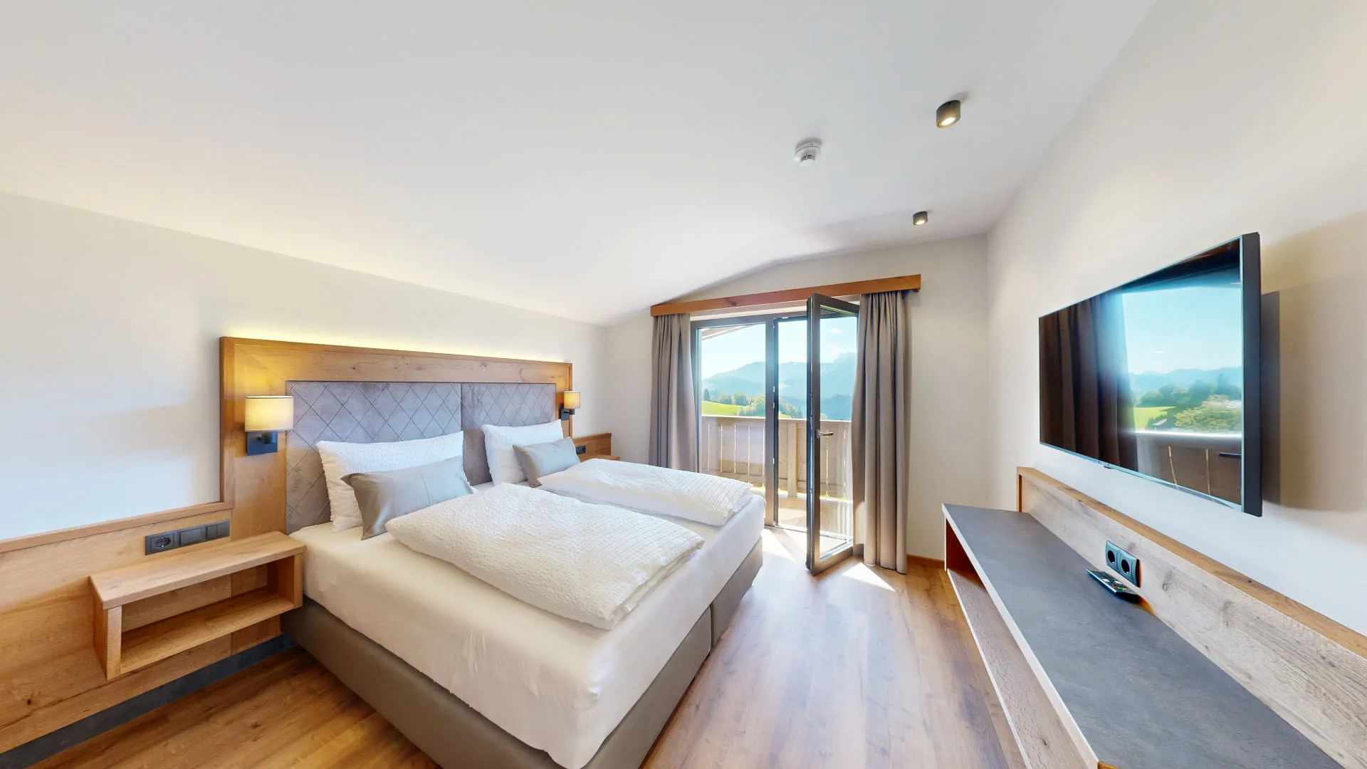 - Schlafzimmer mit Boxspringbett, Anti-Allergie-Bettwäsche und TV
