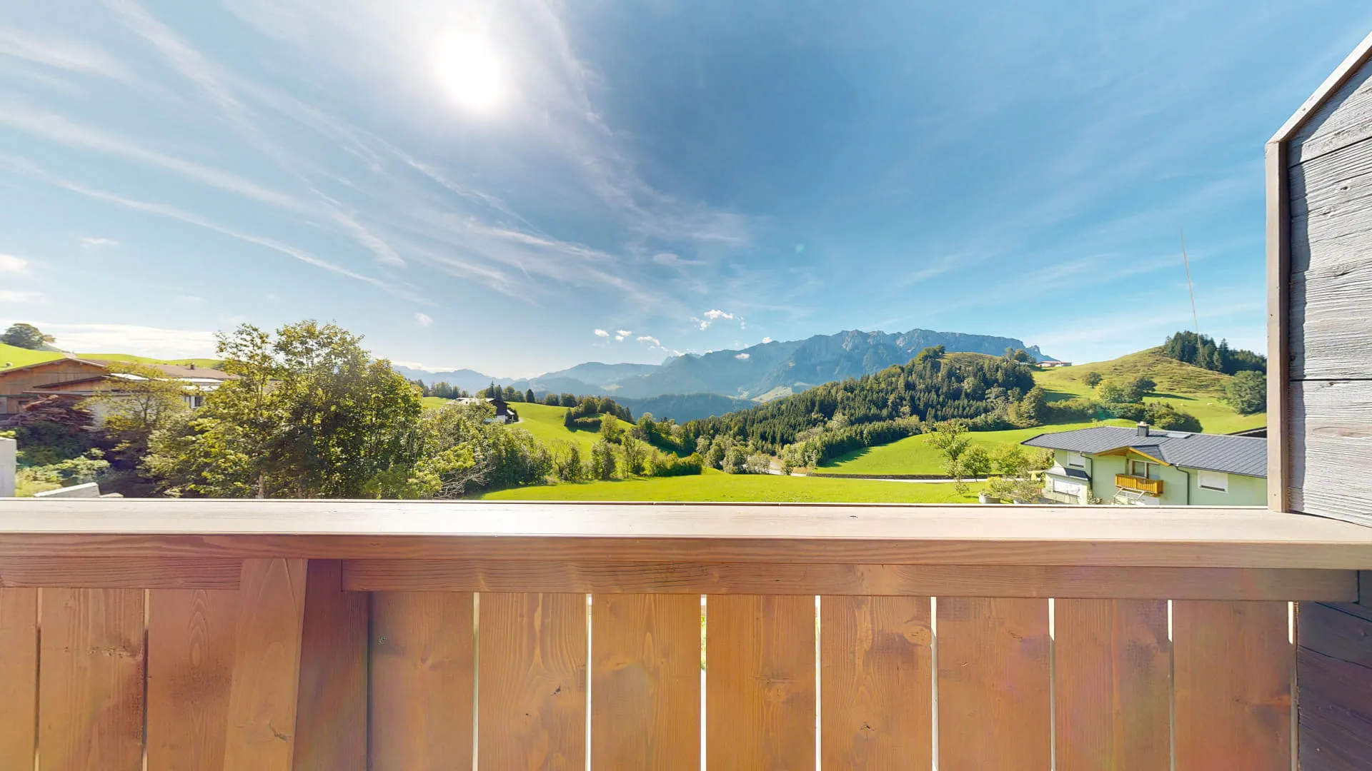 - möblierten Balkon Richtung Süden mit Panoramablick zum Kaisergebirge