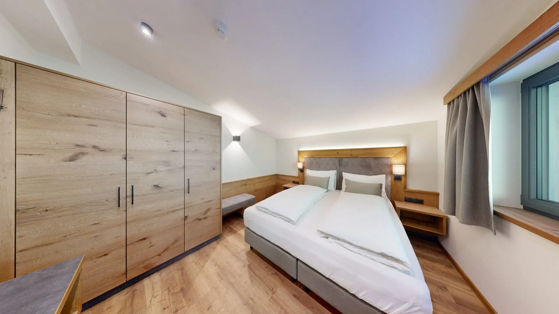 - Schlafzimmer mit Boxspringbett, Anti-Allergie-Bettwäsche und TV